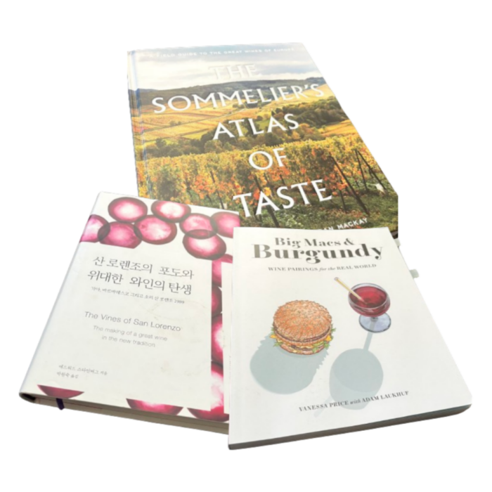 두 번째는 <더 소믈리에즈 아틀라스 오브 테이스트(The Sommelier’s Atlas of Taste), 라자 파르 & 조던 맥케이>로 미국 산디(Sandhi)의 와인 메이커이자 세계적인 소믈리에가 쓴 책이다. 한국에서 열린 와인 테이스팅 행사이자 출판 기념회에서 받은 책인데 프랑스, 이탈리아, 오스트리아, 독일 그리고 스페인 와인 산지와 와인에 관한 저자의 시각이 고스란히 담겨 있다. 고백하지만 책을 다 읽지는 못했고 프랑스 섹션만 읽었는데 (번역서는 아직 없는 듯) 저자가 도멘 듀작(Domaine Dujac)의 수장인 제레미 세스(Jeremy Seysses)와 만나 나눈 떼루아에 관한 이야기가 아주 흥미롭다. 토양 말고도 간과하고 있는 기후와 날씨, 그러한 기후를 갖게 된 배경과 지역마다 무엇이 달라지는지 알고 나니 와인도 많이 다르겠구나 싶다. 또, 중간에 “Questions of Taste”에서 평소 궁금했던 사항에 관해 답변을 해주는데 꽤 유익하다.