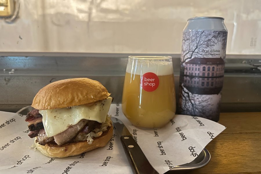 그중 크래프트 브로스의 시티오브더블을 꺼냅니다. 파스트라미와 어울릴만한 맥주가 필요했습니다. 파스트라미는 이곳에서 꼭 먹어봐야 할 음식입니다. 어쩌면 맥주보다 더 인기 있는 이곳의 대표 메뉴입니다. 파스트라미(Pastrami)는 향신료로 양념한 고기가 들어간 버거를 말하는데, 고기 패티 4장이 들어간 비어샵의 파스트라미를 한입 베어 물고 뉴잉글랜드 스타일의 맥주를 마시니 이곳이 바로 뉴욕이 되었습니다.