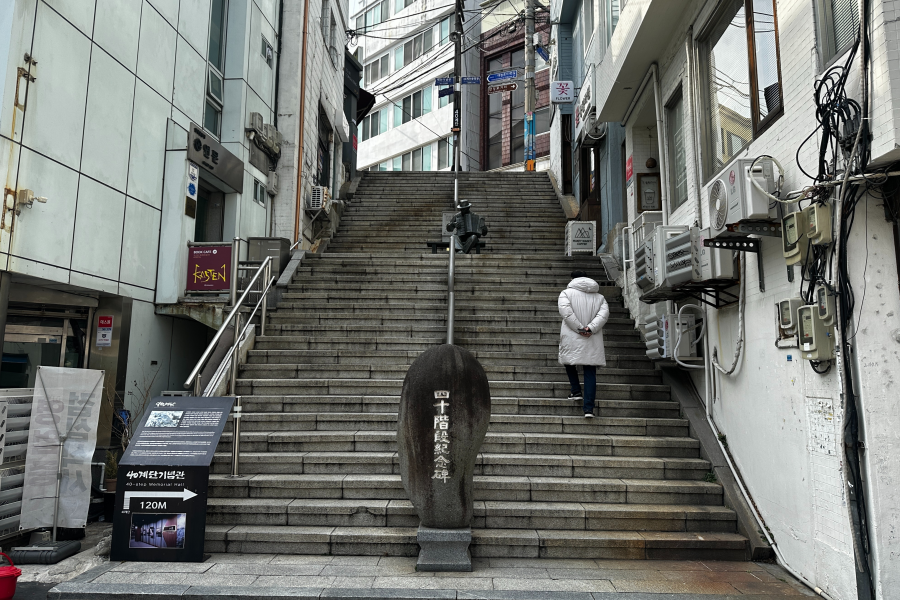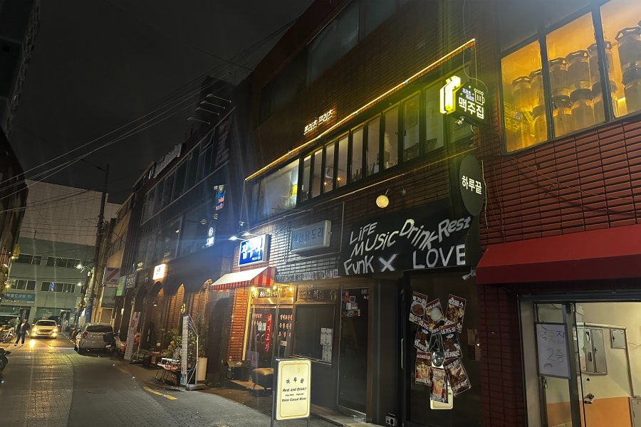 마이행아웃이 있는 거리는 단정하게 보도블록을 깔아 걷기 좋은 길입니다. 굳이 이름을 붙이자면 부산 중앙동 가로수길입니다. <인정사정 볼 것 없다>라는 영화에 나온 44계단이 이곳에 있습니다. 하지만 다른 관광지에 비해 평소 관광객들이 많이 찾는 곳은 아닙니다. 평일에는 주로 직장인들이 찾아와 맥주를 마시는데, 그래서 펍이 추구하는 맥주의 경향을 주변의 상권과 맞췄습니다. 휴일에는 단골손님이 찾아오거나 외국인 관광객이 지나가다 들어오기도 합니다. 실제, 제가 밖을 보는 자리에 앉아 있으니 지나가는 사람들의 호기심 어린 시선과 여러 번 마주쳤습니다.