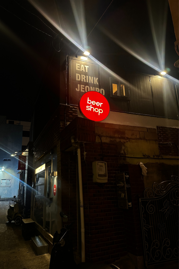 비어샵에 가려면 부산 1호선과 2호선이 만나는 서면역에서 내려 1km 정도 걸어야 합니다. 그럼에도 비어샵에 간 이유는 미국 스타일의 맥주와 파스트라미 버거를 먹으며 뉴욕을 상상하고 싶었기 때문입니다. 서면역에서 비어샵에 가려면 큰길을 따라 걸어도 좋고, 길 찾기에 자신이 있다면 서면의 뒷골목에 15분 정도의 시간을 내주어도 좋습니다. 그렇게 도착한 금요일 저녁의 비어샵 앞에서는 호흡부터 가다듬어야 했습니다. 문을 열자마자 공간을 방황하던 다국적 목소리들이 이때다 싶어 덤벼들었습니다. 마치 귀에 꽂은 이어폰을 뺀 것처럼 한꺼번에 몰려들었습니다.