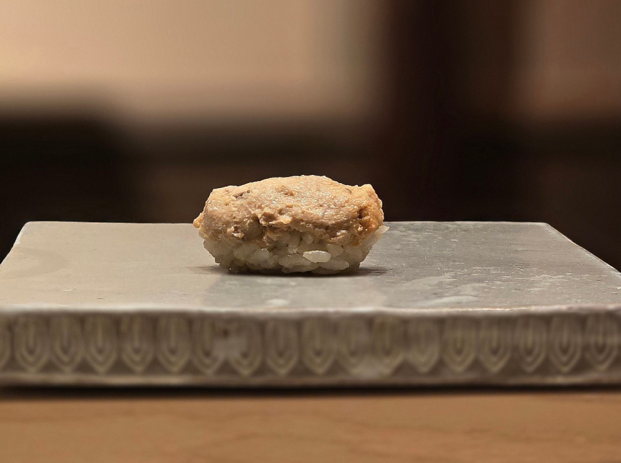 새콤한 모즈쿠 위에 두 번 튀겨낸 아나고 강정. 니기리즈시 시작 전 입가심 용도로 먹는 클렌저일 뿐인데도, 여기에서조차 잔재미를 놓치지 않았다. 새콤한 청량감과 고소한 기름기, 시원함과 따뜻함, 미끄러움과 바삭함이 유쾌하게 충돌한다.