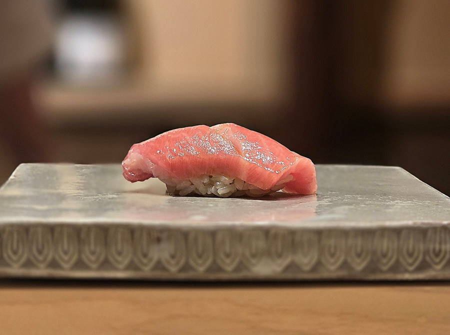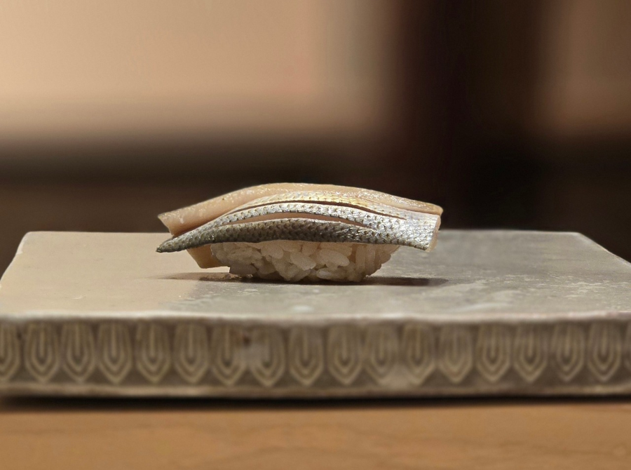 스시 코스의 정점은 참다랑어와 전어. 먼저 아카미와 오오토로가 연달아 등장하며 참다랑어의 양극단을 밀어붙인다. 화려한 산미와 감칠맛으로 긴장감을 주는 아카미와, 촘촘한 지방과 진한 고소함으로 묵직한 여운을 남기는 오오토로가 서로 대비를 이루며 클라이맥스까지 끌고 올라가다가, 최고조에서 강렬한 전어가 등장하는 흐름. 하시라의 전어는 숙성을 길게 하지 않아서, 과한 발효 향이 없으면서도 풍미가 관능적이다.