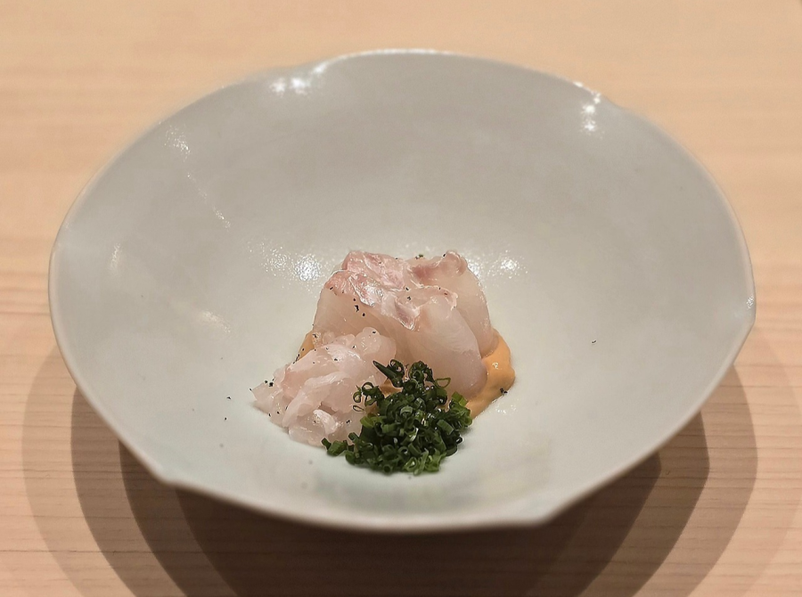 찰랑찰랑 보드라운 차완무시. 3~6월 사이에 물이 오르는 금태의 기름진 단맛과 김의 감칠맛이 녹아들어, 첫입부터 깊고 그윽하다. 한 템포 쉬어가듯 입맛을 정리해 주면서도, 동시에 은은한 여운을 남긴다.