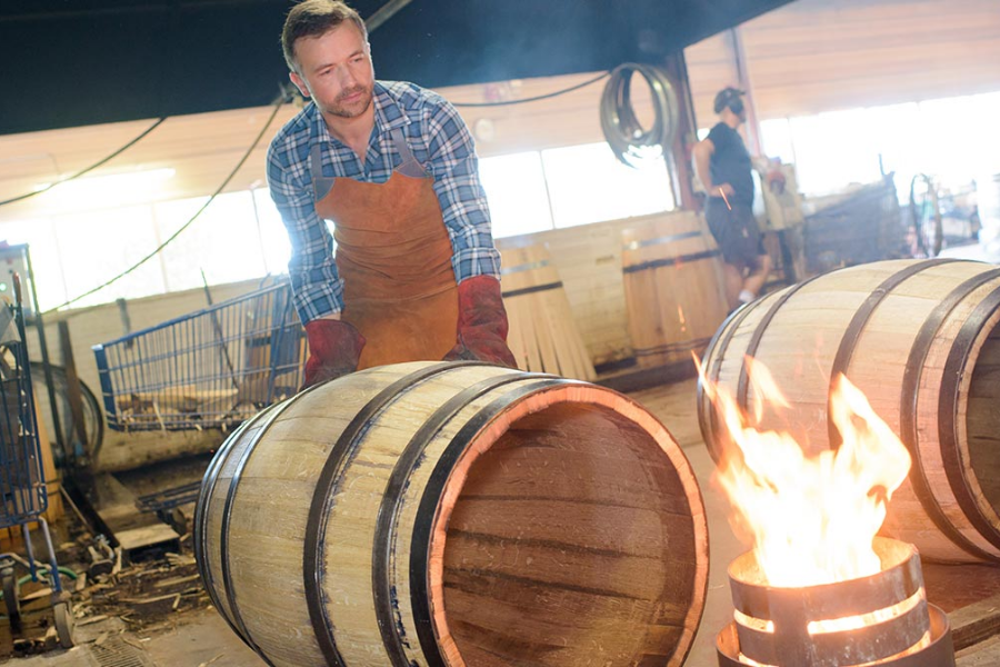 새 배럴 내부를 얼마나 그을리느냐에 따라 와인에 전해지는 풍미가 달라진다. 그을림 정도가 높을수록 향신료, 바닐라, 커피빈 등의 풍미가 풍부해지고, 정도가 약할수록 은은한 풍미와 아로마가 부여된다.