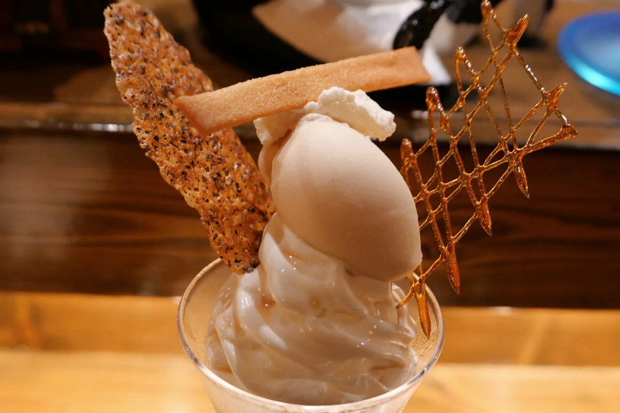 바라 펭귄당의 홍차 파르페는 홍차와 메이플 젤라토에 홍차 젤리가 곁들여져 있다. 여러가지 향을 첨가하지 않고, ‘홍차’라는 키워드에 집중한 듯한 구성이 인상적이다. 메이플 젤라토는 홍차의 풍미를 돋보이게 하는 역할을 충실히 해낸다. 전반적으로 진한 밀크티 아이스크림 맛과 비슷한데, 실크처럼 부드러운 젤라토와 말캉한 젤리의 식감이 매력적이다. 술자리를 마무리한다는 의미에서 먹는 파르페지만, 주류나 커피를 곁들여 세트 메뉴로 즐겨 봐도 좋다. 특히 위스키와의 궁합이 일품이라고 하니 참고할 것.