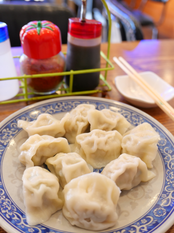 차이나타운 메인 거리에서 약간 떨어져 있는 송천포자는 이름에서 알 수 있듯 포자를 중심으로 여러 만두를 파는 가게다. 만두는 주문과 동시에 빚기 시작한다. 기본 메뉴인 고기 왕만두를 주문하니, 웬만한 찐빵보다 큰 만두가 찜통에 턱 얹어 나온다. 욕심을 내 다른 왕만두를 함께 주문하려다 사장님의 만류로 한 종류만 주문한 것인데, 그 이유가 이해가 가는 사이즈다. 피만 두툼한 것이 아니라, 고기와 당면, 목이버섯을 비롯한 채소가 듬뿍 들어가 내용물이 충실하다. 만두소는 단맛을 줄인 갈비찜 내지는 산적과 비슷해 한국인에게도 익숙한 맛이다. 짭짤해서 간장을 찍지 않아도 간이 딱 맞는다. 이런 만두는 식으면 피가 거칠고 퍽퍽해지는 경우가 있는데, 이곳은 피가 부드럽고 촉촉해 한 김 식혀 천천히 먹어도 맛있다.