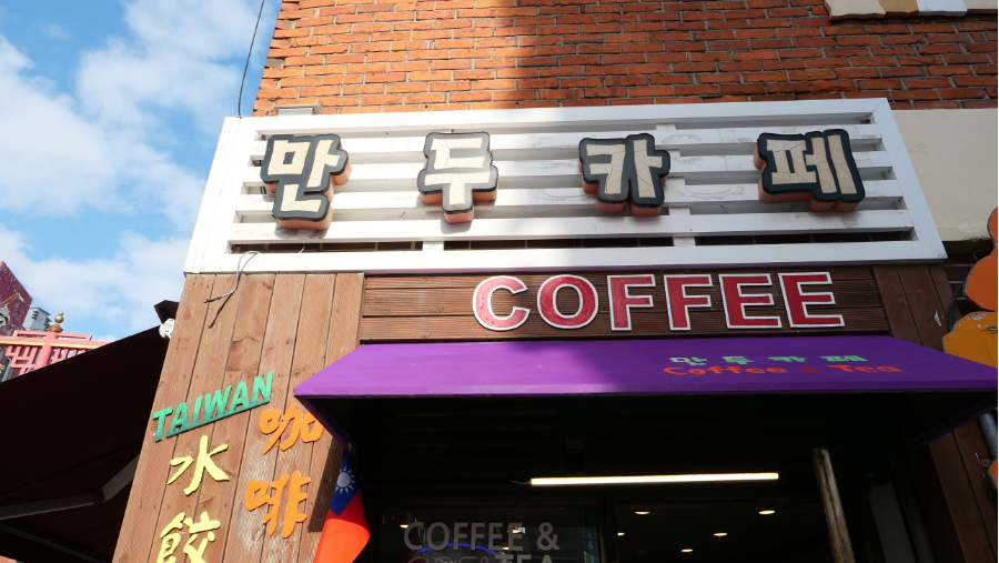 이곳의 만두는 한국 물만두보다 조금 크다. 새우만두는 돼지고기와 함께 새우가 통으로 들어가 있어 식감이 좋다. 만두를 반으로 가르면 팡 터지듯 흘러나오는 육즙도 만족스럽다. 식초, 고춧가루, 간장을 적절히 섞어 양념장을 만들면 만두가 하염없이 들어간다. 현지 물만두처럼 피가 두터운 편이라 호불호가 갈릴 수도 있겠지만, 피 자체가 매우 촉촉하고 쫀득한 데다 소가 실하게 들어 있어 퍽퍽하다거나 밀가루 반죽을 씹는 듯한 느낌은 전혀 없다. 이곳의 만두는 특별한 맛이 난다기보다는 클래식해서 매력적이다. 잡내 없고, 기본에 충실한 만두라고나 할까. ‘아는 맛이 무섭다’는 말이 절로 떠오른다. 이곳에서 만두 한 접시 배불리 먹고, 커피를 포장해 동화마을을 돌아보는 것도 좋다.