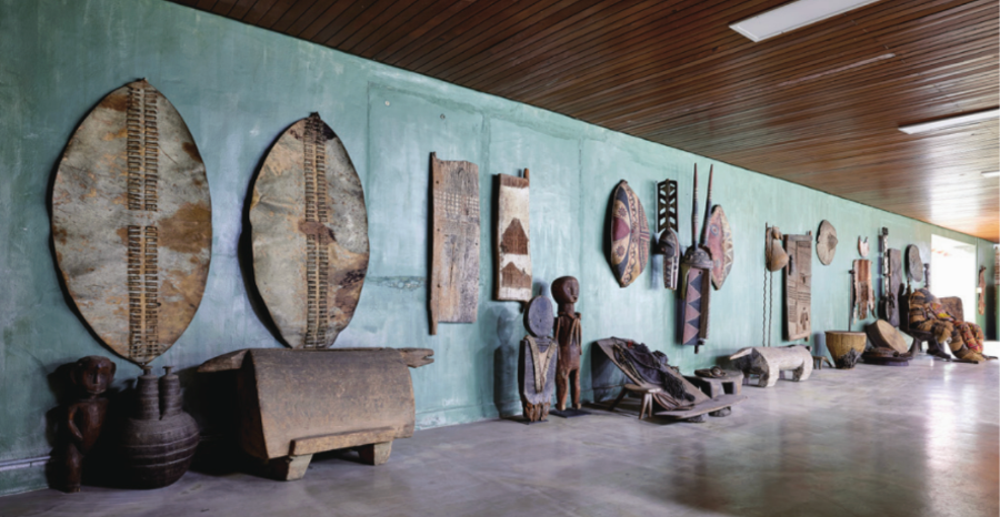 전시 후반부에는 조금 예상 밖의 장면이 등장한다. 아프리카 공예품, 오래된 산업 기계 부품, 유럽 도자기 같은 다양한 물건들이 함께 전시되어 있다. 알고 보니 작가가 오랜 시간 동안 수집해 온 물건들이라고 한다. 신상호는 이런 물건 위에 도자를 붙이거나 서로 다른 사물을 결합해 새로운 작품을 만든다.