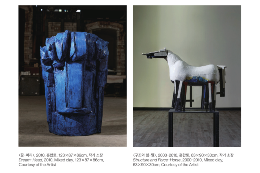 전시장 가운데에 서 있는 말 모양 작품이 특히 눈에 들어온다. 흙으로 만들어졌지만 우리가 알고 있는 도자기와는 전혀 다른 느낌이다. 형태는 거칠고, 표면에는 불에 구워진 흔적이 그대로 남아 있다. 가까이서 보면 질감이 살아 있고, 멀리서 보면 마치 오래된 토템처럼 보이기도 한다. 전시 설명을 읽어보니 이런 작업을 도조(陶彫)라고 부른다고 한다. 도자와 조각을 결합한 작업이라는 뜻이다. 그릇을 만드는 대신 흙을 조형 재료로 사용한 것이다.