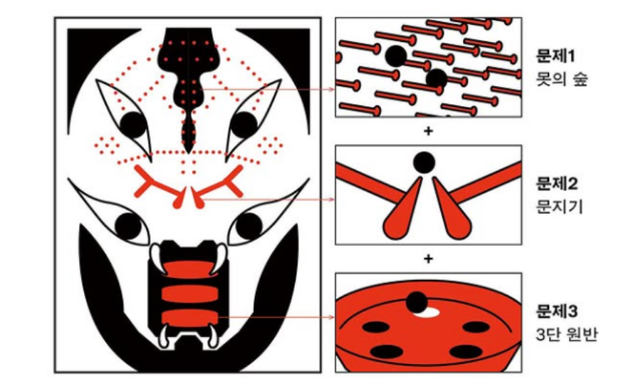 보통 사람이라면 기죽을만한 상황인데요. 문제가 더 어려워졌지만, 카이지는 점장 말에서 오히려 첫 번째 문제인 ‘못의 숲’ 공략법에 대한 아이디어를 떠올립니다.