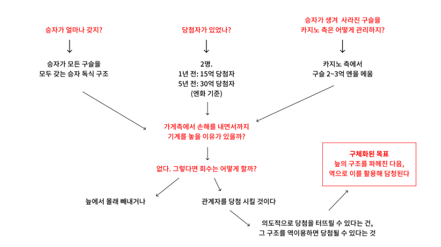 또, 수집한 정보를 바탕으로 ‘카지노 측에서 돈을 회수하기 위해, 결과를 조작해 당첨자를 가려내지 않았을까?’ 판단했죠.