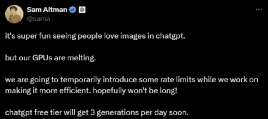 ChatGPT로 지브리풍 이미지 만들기가 유행했던 3월, 연산 수요가 너무 늘어나자 샘 알트먼은 “회사의 GPU가 녹아내리고 있다.”고 SNS에 올리기도 했습니다. 그만큼 AI를 더 많이, 더 빨리, 더 잘 사용하려면 어마어마하게 많은 GPU가 필요합니다.