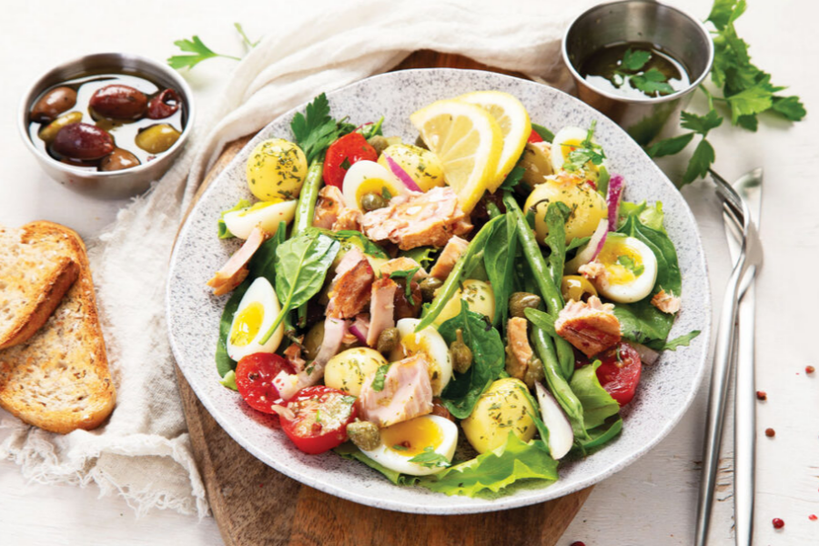 샐러드와 와인을 매칭할 때 가장 큰 문제는 ‘샐러드’라는 단어가 포괄하는 범위가 너무 넓다는 점이다. 어디서부터 어디까지를 샐러드라고 칭해야 할까? 먼저 여름철 한 끼 식사로도 자주 즐기는 클래식 샐러드인 ‘샐러드 니소와즈(salade niçoise)부터 시작해 보자. 전형적인 페어링은 프로방스 로제이다. 이는 단순히 ‘분위기 매칭’이기도 하다. 프랑스 남부에서 휴가를 보내며 로제 와인과 니소와즈를 함께 즐기는 순간, 마키(maquis) 덤불 향이 코끝을 간질이는 풍경이 떠오르기 때문이다. 클레망 쿠쟁(Clément Cousin)은 조금 다른 아이디어를 제안한다. 그는 과거 클라리지스 페라(Claridge’s Fera)에서 소믈리에로 근무했으며, 현재 요크셔 호스퍼스에 위치한 비스트로 ‘바베트(Bavette)’의 공동 소유주이다. 루아르 지역 출신인 그는 니소와즈 샐러드에 앙주(Anjou) 지역의 슈냉 블랑 와인을 곁들이는 것을 추천한다. “슈냉의 산도는 참치와 달걀의 리치한 맛을 깔끔하게 정리해 주고, 미네랄리티는 올리브와 앤초비의 짭쪼름한 맛을 더욱 살려준다.”