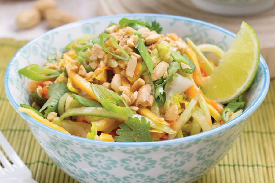 아시아 스타일 샐러드의 달콤·새콤·매콤한 풍미는 과실미와 순수함이 돋보이는 아로마틱한 와인과 잘 어울린다. 피노 누아, 소비뇽 블랑, 리슬링, 피노 그리 등을 생각하면 된다. 예를 들어 베트남식 그린 파파야 샐러드와 리슬링의 조화도 훌륭하고, 런던의 ‘더 베트남 키친(The Vietnamese Kitchen)’ 창립자 히우 부이(Hieu Bui)는 “말버러 소비뇽 블랑의 상큼한 시트러스와 허브 향이 그린 파파야의 신선함과 잘 어울린다.”고 말한다. 매운맛에 약하다면, 약간의 잔당이 있는 와인을 골라 고추 속 캡사이신의 화끈함을 완화하기를 추천한다.