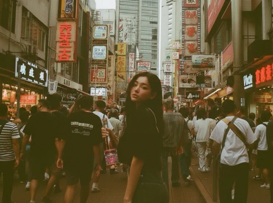 예시로 필름 카메라로 찍은 듯한 옛날 사진, 홍콩 여행 사진을 많이 모아둔 적이 있는데 미드저니에서 제작할 때 도움이 됐습니다. 필터 씌운 듯한 느낌과 제가 넣은 인물 묘사까지 잘 반영되는 걸 볼 수 있습니다.