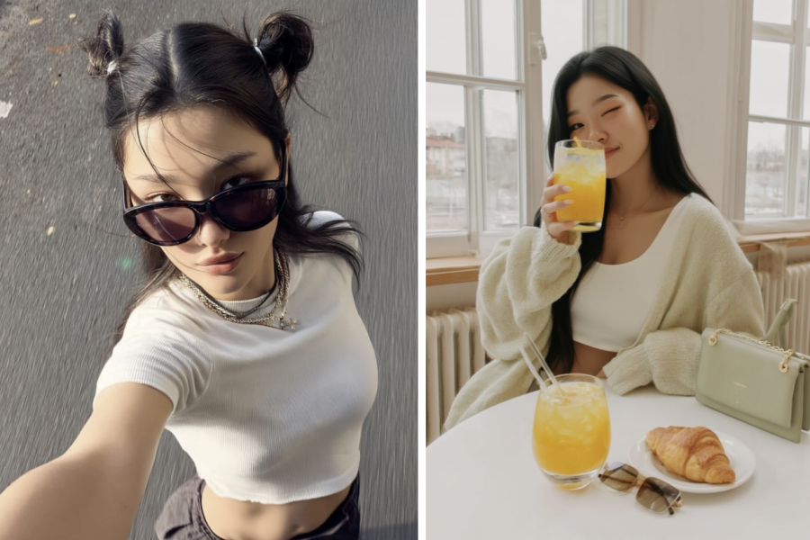 예시로는 하이앵글로 셀카 찍는 모습, 카페에서 친구가 찍어준 듯한 모습을 연출해 봤지만 “여기까지 되나?” 싶은 미친 것까지 일단 해보는 것이 AI의 한계를 알 수 있어 좋더라고요. 예시는 잘 된 이미지만 가져왔지만 실제로 더 과감한 하이앵글, 로우앵글 각도로 가면 일관성이 깨지고 신체가 변형되기까지 하는 것을 알게 됐습니다.