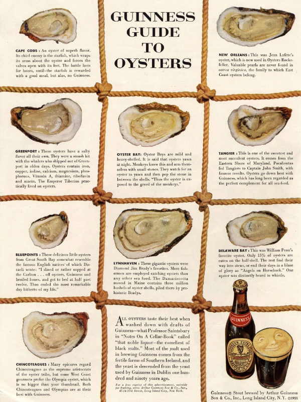 이 조합은 18~19세기 영국과 아일랜드의 대중적인 펍에서 출발한 것으로 보인다. 지금이야 고급 식재료로 손꼽히지만 당시 굴은 값싸고 일상적인 음식이었고, 노동자 계급이 역시 대중적 음료였던 스타우트나 포터에 굴을 곁들여 먹던 것이 지금까지 이어져 온 것이다. 20세기 초 기네스는 브랜드 차원에서 굴과의 페어링을 홍보하기도 했으며, 몇몇 브루어리에서는 아예 굴을 넣어 만드는 ‘오이스터 스타우트’를 생산하기도 한다.