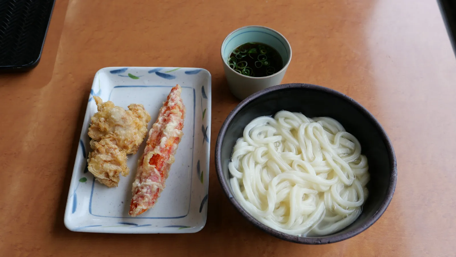 카케 우동을 맛보기 위해 사누키우동 우에하라야 본점을 찾았다. 그런데 내부가 조금 독특하다. 다카마쓰 우동 가게는 자리에 앉아 주문하는 일반 식당, 손님이 직접 음식을 준비하는 셀프 식당, 제면소와 식당을 겸하는 가게로 나뉜다. 이곳은 셀프 스타일의 식당이다. 먹고 싶은 튀김을 그릇에 담는 것도, 면을 국수망에 담아 데우는 것도 모두 손님이 한다. 면을 그릇에 담고 국물과 각종 토핑을 더하면 우동이 완성된다.