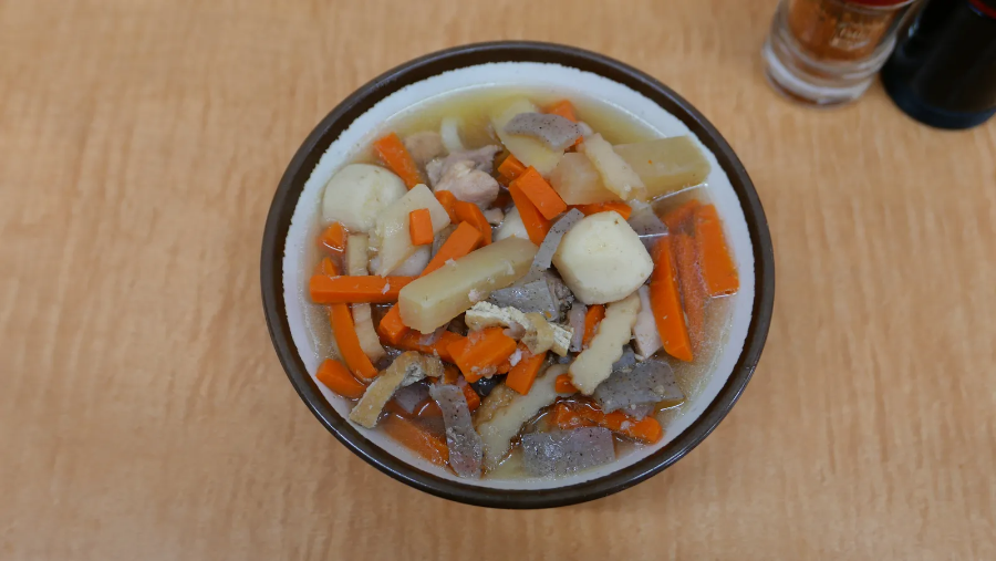 이제까지 접한 우동이 단순하고 절제된 느낌이었다면, 싯포쿠 우동은 그 정반대에 있는 요리다. 당근, 토란, 무, 곤약, 유부, 닭고기 등 잘 익힌 재료들을 푸짐하게 얹어 내기 때문. 재료를 간장에 양념한 듯 엷은 장조림 맛에 채소의 달큰한 맛이 어우러져 만족스럽다. 그대로 맛보는 것도 좋지만, 시치미를 뿌려 칼칼하게 즐기니 더욱 매력적이다. 한 그릇 먹고 나면 추위에 움츠렸던 몸이 조금씩 풀린다.
