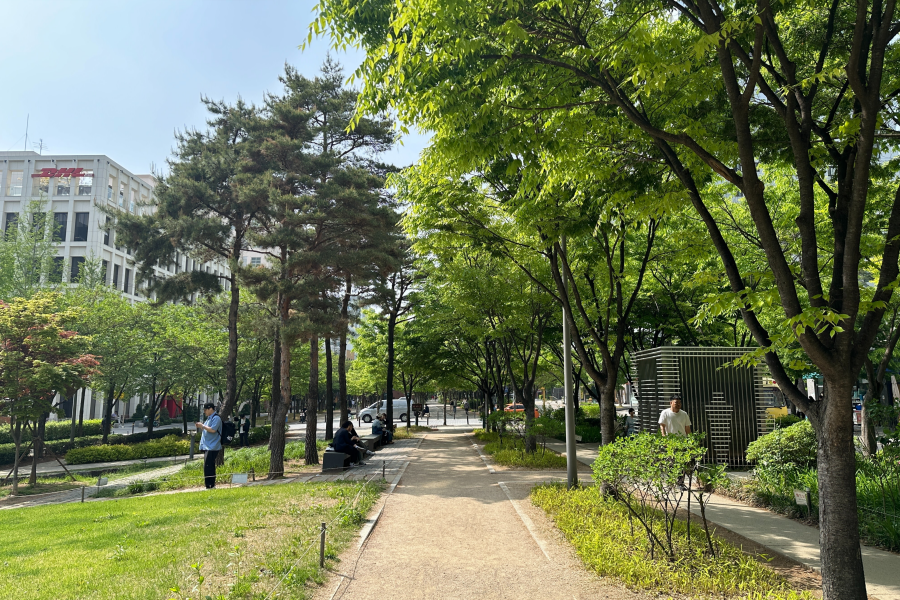 공덕에는 고층건물과 대단지 아파트 사이로 경의선숲길이 뻗어 있습니다.