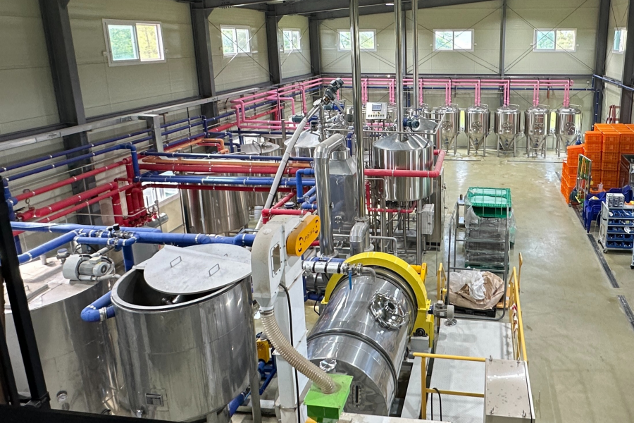 맨 앞쪽에 제맥 시설이, 맨 뒤 쪽에 발효 탱크가 보입니다.