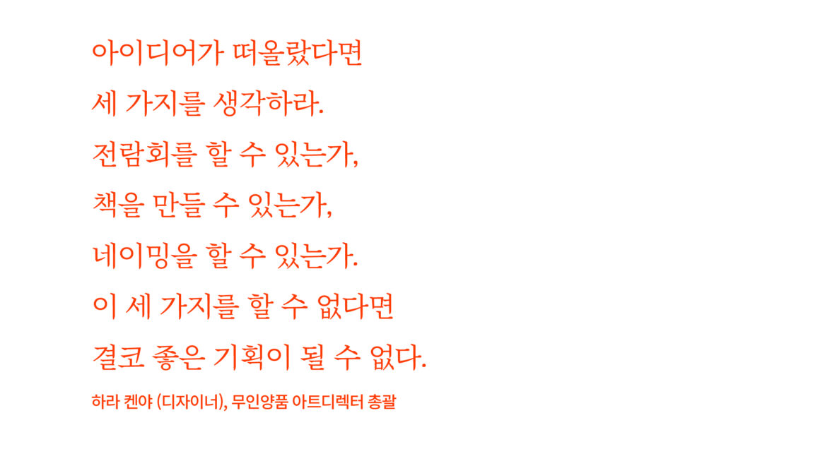 여러분이 기획을 어떻게 할지 고민이라면, 다시 한번 하라 켄야 말을 떠올려봅시다.