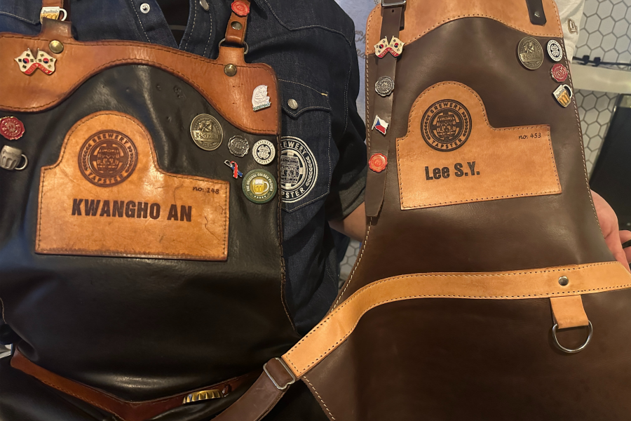 이렇게 선발된 탭스터에게는 가죽으로 만든 앞치마가 주어집니다. 마치 영화 킹스맨에서 킹스맨에 선발된 주인공이 슈츠를 갖춰 입고 손목시계와 반지를 착용하는 것처럼 말입니다. 킹스맨의 손목시계와 반지에 해당하는 것이 탭스터에게는 맥주 장비 청소 키트입니다. 가죽으로 된 앞치마에는 탭스터 고유의 번호와 이름까지 박혀있으니, 탭스터의 상징이라고 할 수 있습니다.