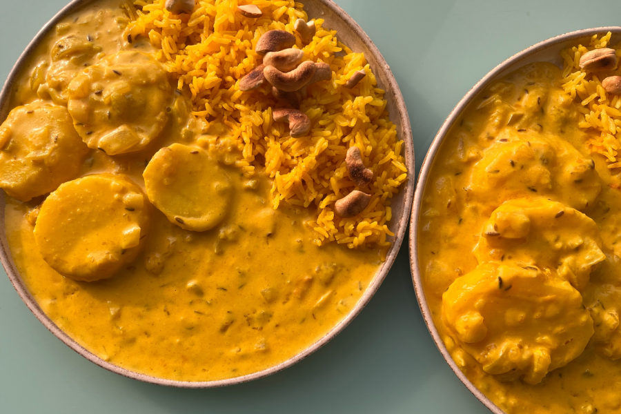 마지막으로 터메릭(turmeric/강황)과 커민 시드(cumin seed)로 개운하고 살짝 매캐한 풍미를 낸, 노란빛이 식욕을 돋우는 카레. 태국 옐로 커리에 성큼 다가선 맛이기도 해요. 하지만, 에스닉한 향미가 전혀 부담스럽지 않고 마일드한… 고소해서 누구나 즐길 수 있는 맛!