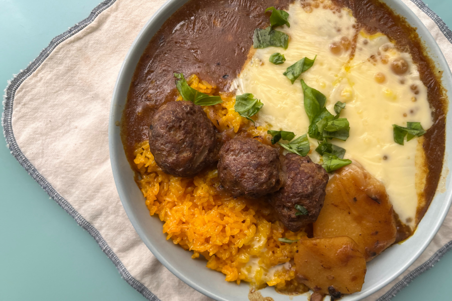 다음은 1955년 후쿠오카현의 항구도시 모지코(福岡県 門司港)에서 태어난 야키 카레(焼きカレー). 질냄비에 밥과 카레를 담고 치즈를 얹어 그라탱처럼 오븐에 구워내는 요리인데, 사진처럼 내열 접시에 담아 구워도 되죠. 30곳이 넘는 모지코의 야키 카레 식당들은 대개 소고기나 새우, 복어, 문어 등 해산물을 주재료로 쓰는데, 오늘 알려 드리는 건 미트볼을 올린 야키 카레. 필자처럼 평소 미트볼을 듬뿍 만들어 냉동해 둔다면 아침에도 빠르게 만들 수 있는 퀵 버전이죠.