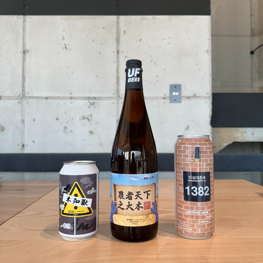 2018년부터 시작한 을를 프로젝트는 2023년 10월 오픈을 목표로 하고 있었지만 양조장을 준비하는 기간을 헛되이 보내지 않았습니다. 양조장 준비 기간에 시작한 것인 선배 양조장과의 협업입니다. 해외에서는 양조장 간의 협업 맥주가 흔하여 이를 콜라보레이션 맥주라고 부르지만, 한국에서는 진정한 협업 맥주가 많지는 않습니다. 기껏해야 미국이나 영국 출신의 외국인 양조가들이 뭉쳐서 만든 정도입니다. 을를은 그동안 양조장 설립에 도움을 준 선배 양조장과 협업을 하기로 했습니다. 크래프트 맥주는 협업을 통해 발전할 수 있다고 생각했습니다. 하지만 선배 양조장은 을를에 도움을 줄 수 있어도 을를은 그들에게 줄 수 있는 게 아무것도 없었습니다. 하지만 선배 양조장은 을를의 제안을 흔쾌히 허락해 주었습니다. 맥주에 대한 아이디어나 라벨링, 브랜딩은 을를에서 담당하고, 레시피는 공동으로 설계했으며, 양조는 선배 양조장에서 했습니다. 되도록 선배 양조장들이 그동안 잘해온 스타일을 재해석했습니다. 그렇게 나온 콜라보 맥주에는 사우어 맥주에 일가견이 있는 태평양조와 함께한 히스토릭 에일, 정통 독일 맥주를 표방하는 툼브로이와 함께한 바이젠복, 우리나라 보리로 맥주를 생산하는 UF Beer와 함께한 세종 등이 있습니다. 그중에서 태평양조와 함께 양조한 히스토릭 에일의 양조 과정이 매우 흥미를 끕니다. 바로 ‘미지수’라는 맥주입니다.