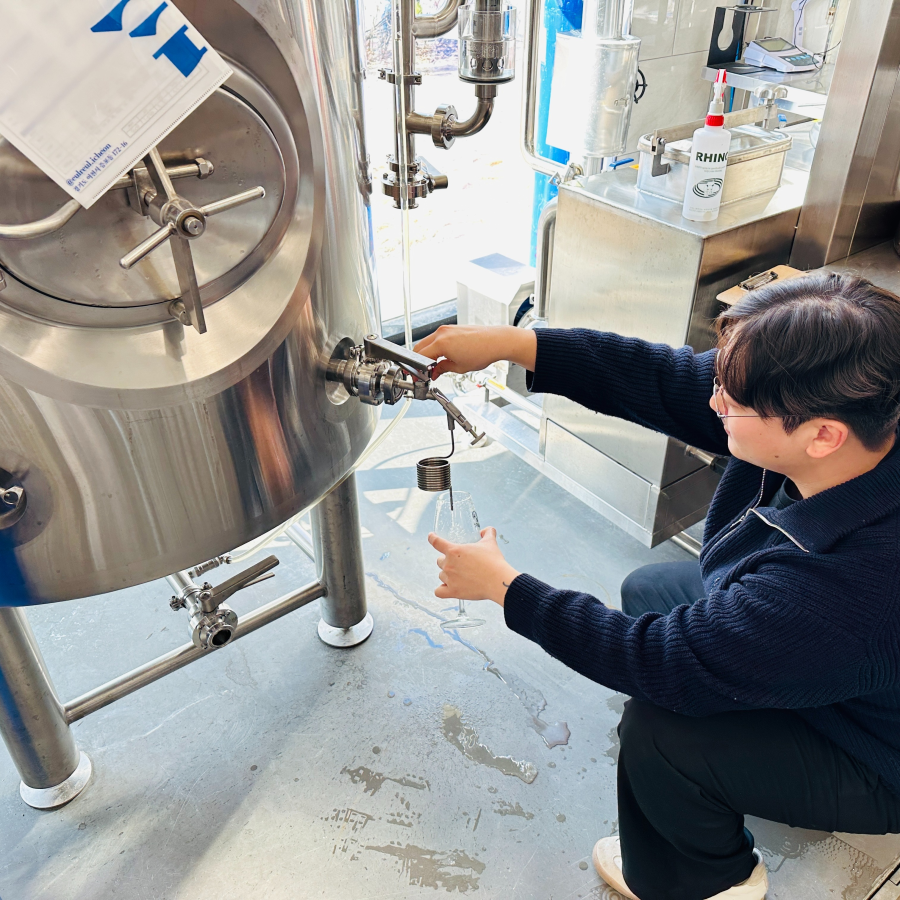 을를은 이제 콜라보 맥주의 경험과 선배 양조사들의 도움을 바탕으로 직접 맥주를 만들고 있습니다. 을를이 추구하는 양조 철학은 대중적이면서도 비어 긱스(Beer Geeks)가 만족하는 맥주를 만드는 것입니다. 해외에서 임페리얼 스타우트나 사우어 에일로 유명한 양조장에서도 라거나 페일 에일과 같은 모두를 위한 맥주를 만듭니다. 심지어 그 수준이 매우 높아 맥주 애호가들도 즐겨 찾는다고 합니다. 정빈 양조사는 음용성이 좋아서 누구나 즐길 수 있는 맥주, 그러면서 맥주 전문가가 보기에 결이 느껴지는 맥주, 비즈니스 회의를 하면서 가볍게 즐길 수 있는 맥주를 만들고 싶다고 합니다. 앞으로 공개될 라인업에는 필스너, 페일 에일, 스타우트과 같은 맥주의 교과서적인 스타일이 포함되어 있고, 잉글리쉬 다크 마일드나 고제와 같이 조금 생소한 스타일도 포함되어 있습니다. 잉글리쉬 다크 마일드는 영국에서 오랫동안 만들어온 스타일인데, 적당이 호피하고, 적당히 몰티하고, 적당히 과일 풍미가 있어 그 모든 균형이 적절해 마시기 편한 스타일입니다. 고제는 고소한 맛, 짠맛, 신맛의 균형이 좋아서 무한히 마실 수 있는 스타일입니다. 그 밖에 이번 시즌에서만 선보이는 스타일로 세종과 임페리얼 스타우트도 준비하고 있습니다. 이렇게 여러 스타일을 한꺼번에 공급할 수 있는 이유는 양조 시설의 규모가 작기 때문입니다. 발효조의 크기가 500리터에 불과합니다. 하지만 발효조의 수가 10개가 넘습니다. 을를의 양조 시설에는 짧은 주기로 양조하여 여러 스타일의 맥주를 빠르게 공급해 보겠다는 양조상의 의지가 반영되어 있습니다.