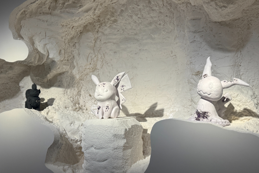 포켓몬도 예술이 될 수 있을까요? 첫 번째 파트에서 아샴이 시간과 역사를 섞어놓았다면, 두 번째 파트에서는 예술의 경계에 대해 생각해 보게 합니다. 아샴은 2020년, 포켓몬 원작 애니메이션 감독 유야마 구니히코와 협업하여 포켓몬과 아샴 자신의 세계관을 연결하는 애니메이션을 제작했고, 꾸준히 포켓몬을 소재로 한 예술 작품을 선보였습니다. <포켓몬 동굴>에서는 동시대 가장 유명한 대중문화의 아이콘이라고 할 수 있는 포켓몬이, 거대한 동굴 안에서 부식된 모습으로 놓여있습니다.