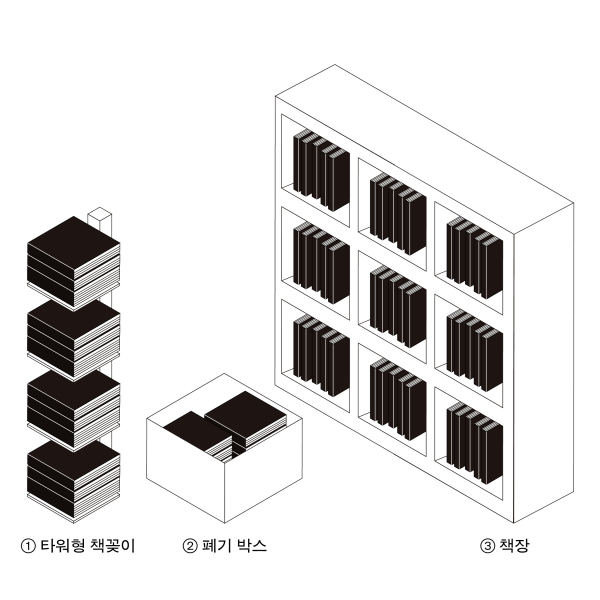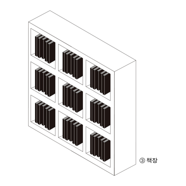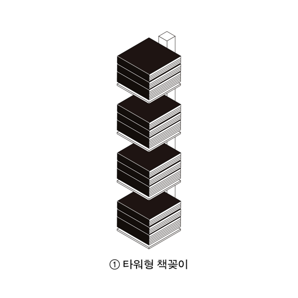 ➀ 읽는 도중 책 → 타워 타입 책꽂이