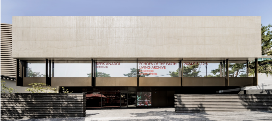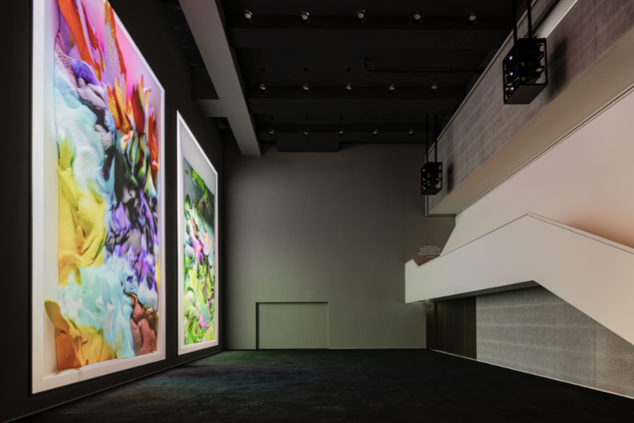 이름과 포부부터 미래적으로 느껴지는데, 그에 걸맞게 첫 전시는 AI 미디어 아티스트 레픽 아나돌(Refik Anadol)의 아시아 최초 개인전입니다. 일단 AI로 ‘예술’을 한다는 게 어떤 의미일지 상상이 안 되실 텐데요. 2023년 작품인 <인공 현실: 산호(Aritificial Realities: Coral)>를 먼저 소개해 드릴게요. 가로가 무려 12m인 작품이에요. 거대한 산호 사이에서 웅장함이 느껴지기도 하고, 바닷속을 산책하는 기분이 들기도 합니다.