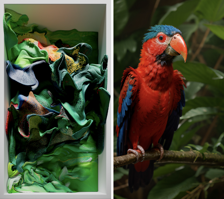 푸투라 서울에서 본 가장 인상적인 작품은 <기계 환각> 시리즈였습니다. 4억 개가 넘는 동물 이미지 데이터를 활용한 <동물>, 1억 5,500만 개의 자연 풍경 이미지를 활용한 <풍경>, 수백만 장의 식물 이미지를 활용한 <식물>까지, 3개의 작품이 높이 10m의 공간에서 끊임없이 재생됩니다. 어찌 보면 그냥 구글에 검색하면 나오는 이미지들을 대충 긁어모아서 학습시키면 되는 거 아닌가, 싶겠지만 레픽 아나돌은 데이터 수집의 ‘윤리성’을 강조합니다. 그는 모두에게 공개된 오픈소스 데이터만 사용하거나, 실제 열대 우림 지역에 찾아가 원주민과 생활하며 직접 공수해 왔다고 해요.