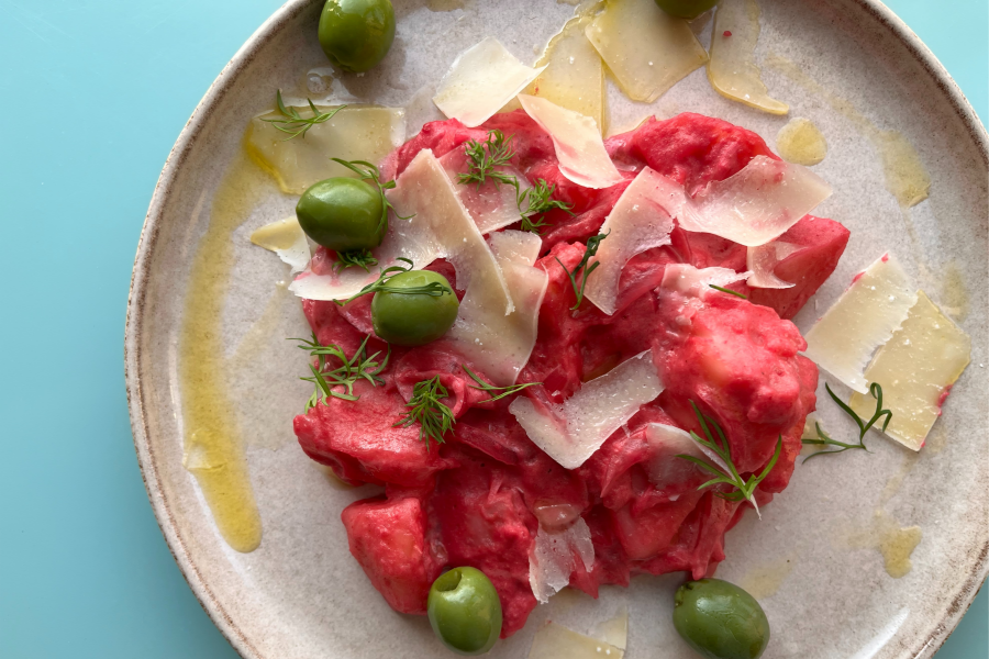 홈메이드 훔무스 마지막 버전은 화려한 색감의 ‘핑크 훔무스’. 화려함의 숨은 주역은 바로 비트인데요. 아름다운 빛깔이 시선을 확 끄는 만큼, 크래커나 길게 썬 셀러리, 당근 등과 함께 야채의 딥으로서 홈 파티 테이블에 올리면 칭찬 세례가 쏟아질 버전. 딜 등 상큼한 허브, 고소함을 한 번 더 더해 줄 해바라기씨를 토핑해 줘도 좋고요. 비율은, 상술한 기본 훔무스 재료일 때, 중간 크기 정도의 비트가 적당합니다(물론 기호껏 가감). 깨끗이 씻은 비트를 알루미늄 포일로 싸서 190도로 예열한 오븐에 1시간쯤 구워서 조금 식힌 후, 껍질을 까고 적당한 크기로 썰어, 다른 재료들과 함께 갈아 주면 끝입니다. 핑크 훔무스의 가장 손쉽고 맛난 활용 예는 샐러드. 핑크 훔무스 2~3큰술에 생크림 2~3큰술을 섞어, 삶은 감자와 버무리고 그라나 파다노(grana padano) 같은 경성 치즈와 그린 올리브 등을 올린 뒤 좋아하는 빵을 곁들이면, 결코 멈출 수 없는 맛 완성!