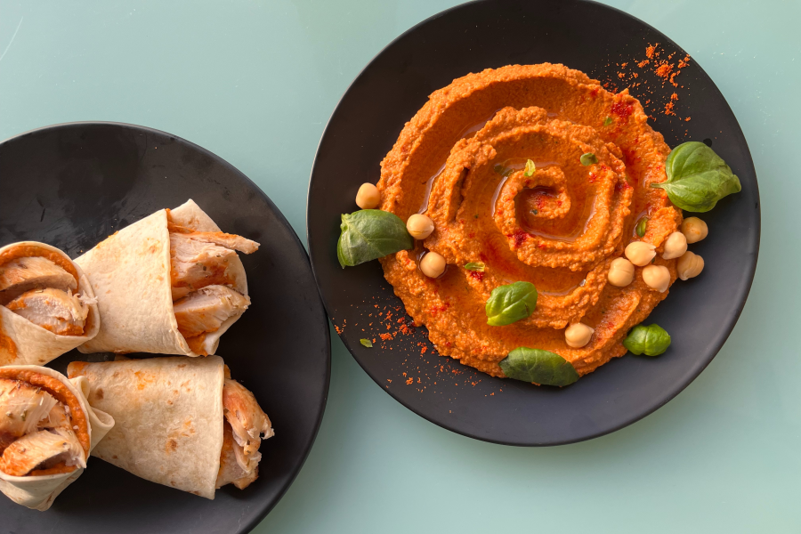 바질, 그리고 선 드라이 토마토(sun dried tomao =말려서 올리브유에 절인 토마토)가 있다면 눈이 휘둥그레지게 맛난 토마토 훔무스도 만들 수 있습니다. 토마토와 바질은 원래 단짝 조합인데, 여기에 고소한 감칠맛 품은 콩이 더해지니 맛날 수밖에요. 새콤, 향긋, 고소함의 조화가 정말 일품인데요. 기본 훔무스 재료에 이 두 가지를 더해 함께 갈아주면 끝. 비율은 역시 기호에 따르지만, 전술한 기본 훔무스의 분량이라면 선 드라이드 토마토는 약 60g, 생 바질은 5~6장. 개인적으로는 가장 좋아하는 변주 버전 훔무스이기도 한데요. 드셔 보시면 반드시 고개를 끄덕이게 될 맛! 토마토 훔무스를 피타에 바르고 구운 닭가슴살을 샌딩 해도 참 맛나고, 피타 대신 토르티야(tortillas =옥수수로 반죽, 발효 없이 납작하고 둥글게 만든 빵)로 그렇게 만들어도 굿.
