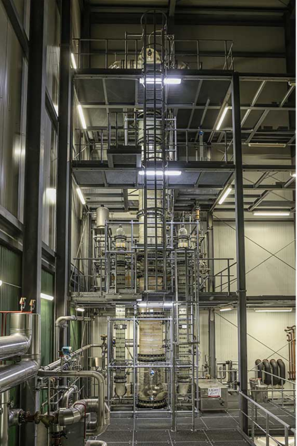 진공 증류는 1907년 독일의 Carl Jung이 발명한 이미 잘 알려진 기술이다. 그 이후로 시스템이 개선 및 추가되었지만(특히 식품 산업용으로 설계된 풍미 추출 시스템인 스피닝 콘 컬럼(Spinning Cone Column) 기술의 도입), 근본적인 원리는 동일하다.