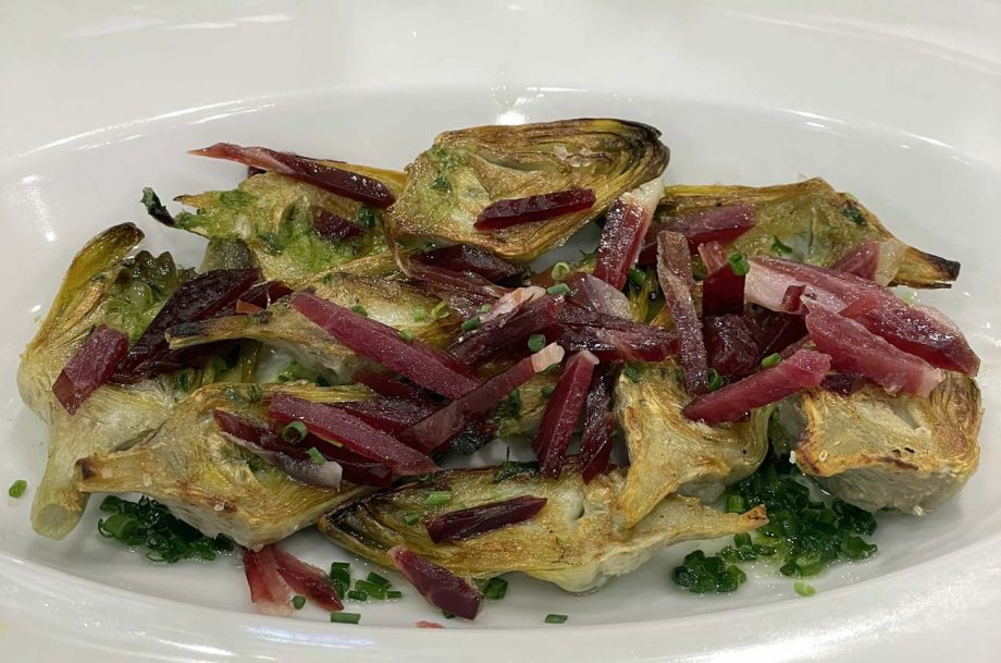 Victoria Eugenia 레스토랑의 아티초크와 하몽 요리 – 일반적으로 페어링하기 어려운 요리. 사진: Shawn Hennessey