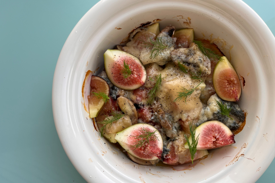 필자는 직전에 프라이팬에 섞어 향이 짙게 올라온 커민을 뿌리거나, 또 타임이 있다면 잎만 떼어 듬뿍 뿌려 먹기도 하는데요. 살짝 매캐한 풍미의 커민은 단맛과 짠맛 사이에서 좋은 악센트가 되어주고, 상쾌한 향의 타임 역시 맛의 시너지를 한껏 끌어올려 줍니다. 블루치즈는 디저트에 다용되는 돌체(dólce)가 아닌, 좀 더 쿰쿰하고 짜면서 농후한 맛인 피칸테(Piccante)를 써야 해요. 물론 부라타나 모짜렐라 등 좋아하는 다른 치즈로 대체해도 맛납니다. 어떤 쪽이건 그라나파다노 같은 경성 치즈를 조금 섞어 주면 더 맛나답니다.