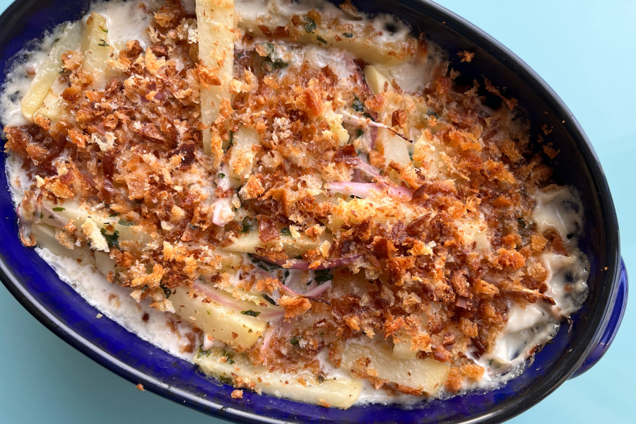 서서히 익는 감자에서 나온 전분과 우유가 섞이면 걸쭉한 소스이자 천연 조미료 역할을 하니, 이루 말할 수 없는 감칠맛으로 차오르게 되죠. 유제품과 감자 특유의 고소함을 잘 융합시킨, 딱히 어려울 게 없는 조리법이지만 말씀드렸다시피 시간을 좀 요하는 요리… 그러나 바쁜 아침에도 휘리릭 만들 수 있는 조리법이 있습니다.