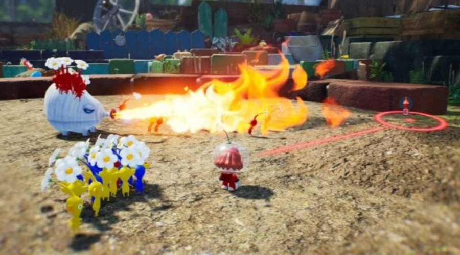 피크민의 색에 따라 포켓몬처럼 상성이 있어서 빨간색은 불, 파란색은 물, 노란색은 전기 능력이 있습니다. 게임의 매력은 피크민들을 모아서 함께 탐험하고 전투하는 것이죠.