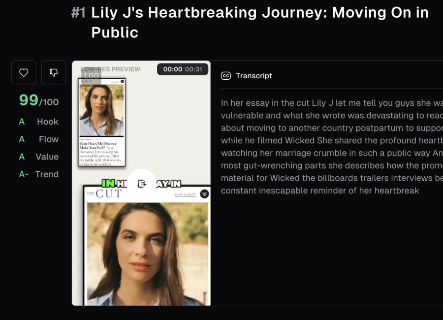 OpusClip 안에 있는 AI Virality Score 기능은 만들어진 쇼츠의 바이럴 가능성을 평가하는 점수를 제공합니다. 이 점수는 수천 개의 바이럴 비디오를 분석한 결과를 기반으로, 어떤 클립이 더 많은 조회수를 얻을 수 있을지 예측해 준다고 해요.