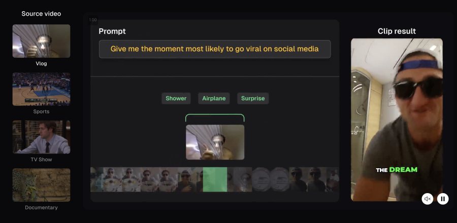 세 번째로 OpusClip을 소개할게요. 긴 영상을 짧은 소셜 미디어용 클립, 즉 쇼츠나 릴스로 자동 변환해 주는 도구예요. 출시 7개월 만에 연 매출 130억, 500만 명의 사용자를 모은 스타트업으로, 현재 Billboard.com과 같은 큰 미디어 기업들도 활용하고 있죠. 풀영상을 넣으면 AI가 영상의 하이라이트를 자동으로 추출하고, 여기에 적절한 자막과 배경 영상을 더해 틱톡이나 인스타그램에 최적화된 콘텐츠를 만들어내요. 1시간짜리 영상을 올리기만 하면 쇼츠 20개를 뽑아주는 거예요.