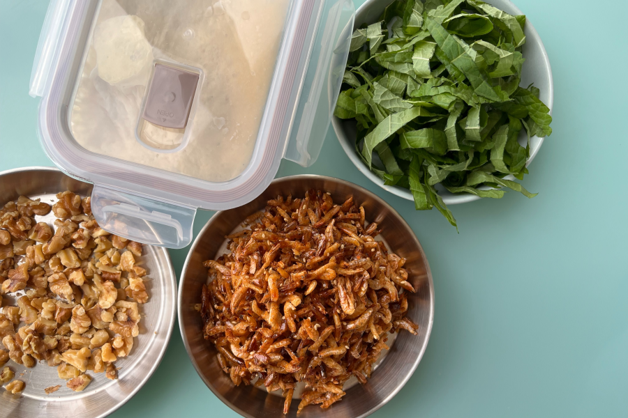 필자는 실제로 비상식 삼아 냉장고에 종종 발효 도우를 넣어 두곤 하는데요. 본향의 재료뿐 아니라, 때로는 평소 먹는 다양한 요리, 혹은 냉장고에 남아 있던 반찬을 올리기도 하는데, 이 또한 별미랍니다. 앤쵸비 대신 건새우 볶음을, 허브 대신 깻잎 슬라이스를, 그리고 파르미지아노 레지아노나 그라나 파다노 등의 경성 치즈를 갈아 모짜렐라 치즈와 함께 듬뿍 올리기도 하고, 여기에 부순 견과류를 올려도 참 잘 어울리죠.