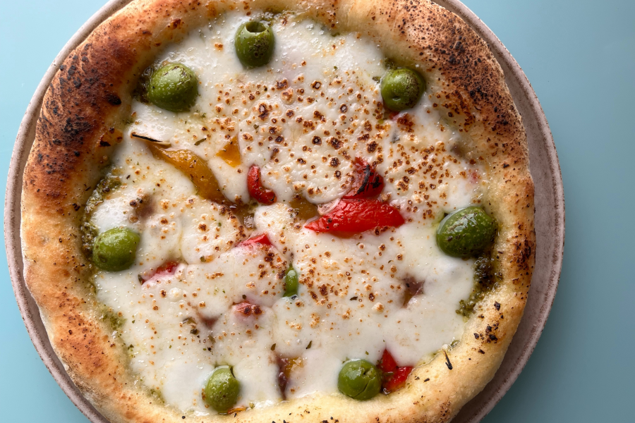 한 가지 주의점은, 프레쉬 모짜렐라는 적당한 크기로 자르거나 찢어서 사용 직전까지 키친타월이나 면보 등으로 감싸 둬서 수분을 최대한 제거해야 해요. 아무래도 순식간에 수분을 날리는 500도 고온 화덕과는 달라서, 프레쉬 모짜렐라를 그대로 도우에 올려 팬에서 구우면, 수분이 분리되어 흐르고 축축해질 수 있거든요.