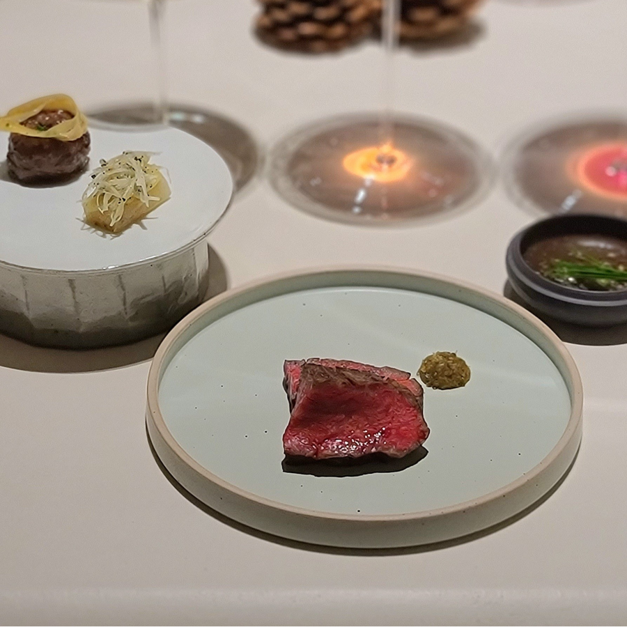 식사 시간이 무려 네 시간 가까이 이어졌는데도, 전혀 길게 느껴지지 않았다. 처음부터 마지막까지 물 흐르듯 유연하게 흘러가면서도, 중간중간 강약 조절을 하며 코스 후반부로 갈수록 점점 자연스럽게 고조되니 단 한 순간도 지루할 틈이 없더라.