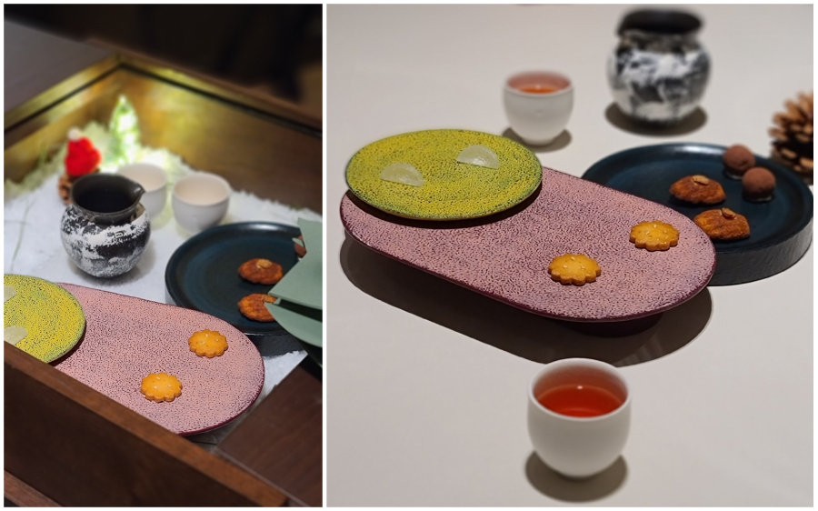 겨울의 군고구마를 연상케 하는 디저트. 고구마로 만든 세미프레도, 고르곤졸라 사브레, 우유로 만든 떡, 쌀로 만든 아이스크림, 고구마칩.