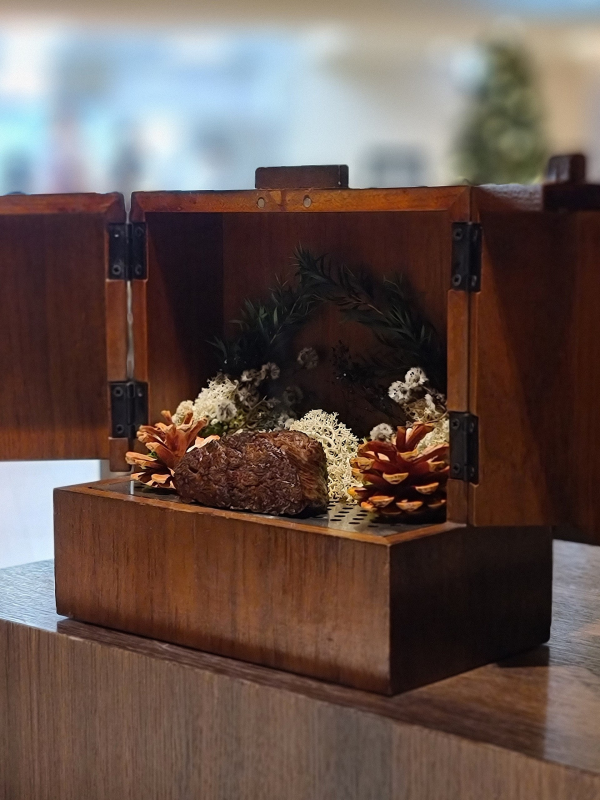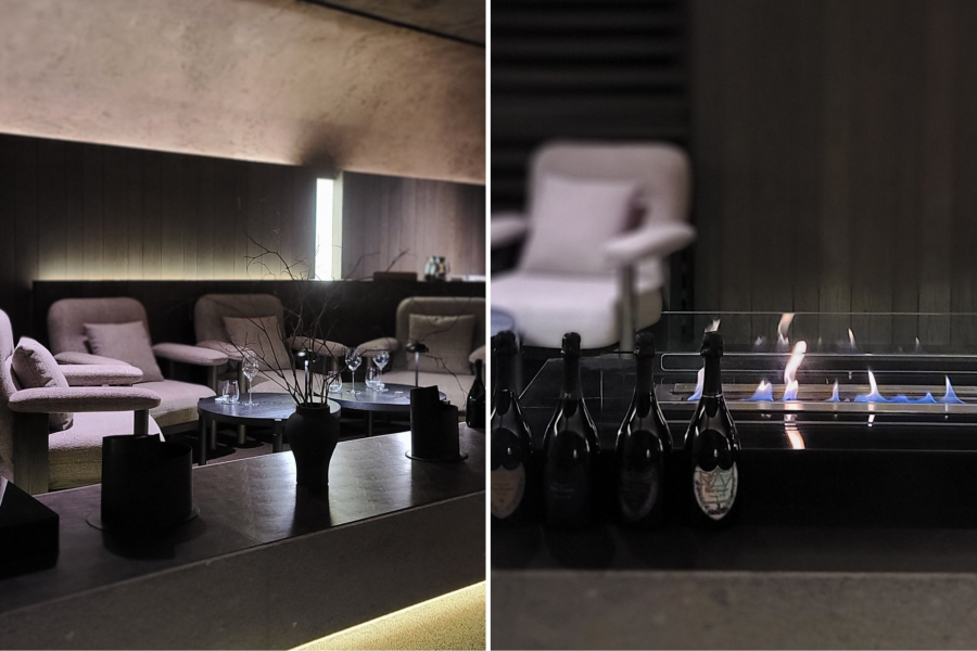 여느 주택의 응접실처럼 안락한 라운지 체어와 낮은 원형 테이블, 모닥불 장식으로 따스하게 꾸며져 있다. 이 분위기에 젖어 느긋하게 기대어 앉아 잔잔한 음악을 감상하며 아뮤즈부쉬(Amuse-bouche)와 샴페인을 즐기다 보면, 하루 일과를 마친 후 집에서 쉬는 듯한 편안함이 온몸을 감싼다.