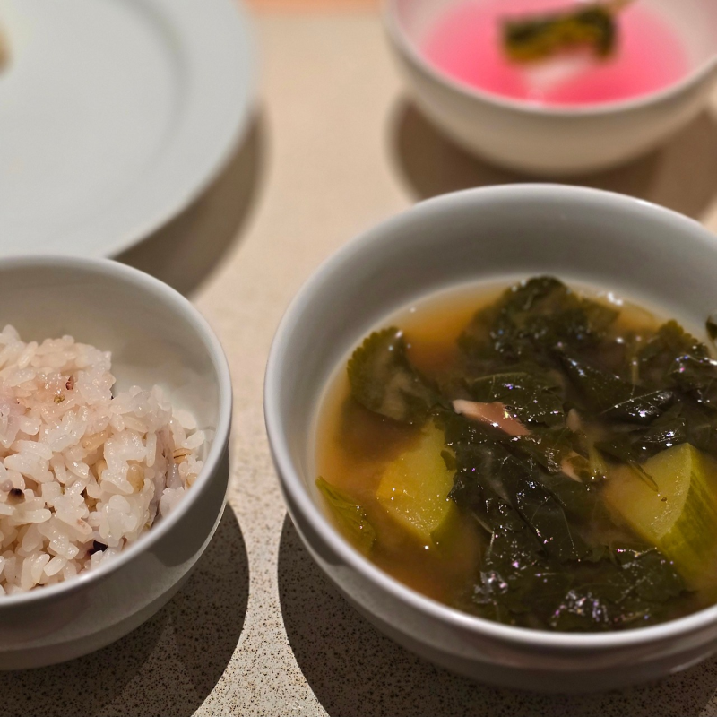 식감이 살아있는 잡곡밥과 감칠맛이 폭발하는 된장국. 표고버섯, 능이버섯, 송이버섯을 진하게 우려낸 육수와 쌀뜨물, 직접 담근 된장으로 끓여낸 된장국인데도, 고기나 해산물, 조미료를 사용한 된장국보다 풍미가 더 진하다.